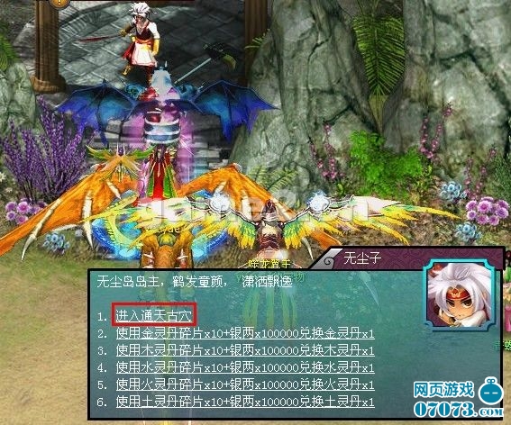 完成相關(guān)主線任務(wù)后的玩家,可在【無塵島】的【無塵子】處進入通天古穴副本。該副本為15人大副本,進入副本后所有玩家在古穴入口集中,副本分為普通難度和高級難度,由隊長選擇相關(guān)難度進入。