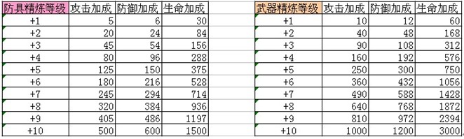 1.精煉防具每級消耗1個對應(yīng)等級的精煉鐵,精煉武器每級消耗2個對應(yīng)等級的精煉鐵。