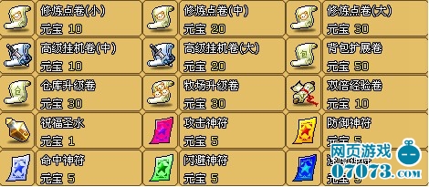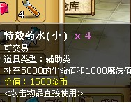 游戲中的道具包括裝備、藥品、技能類、進化合成類、強化打孔類,增益輔助類和任務(wù)道具等。這些道具你可以在新手任務(wù)中獲贈,也可以去鐵匠鋪、防具鋪、雜貨鋪、交易市場和元寶商店購買,還可以通過完成戰(zhàn)勝野外怪物、自動掛機打怪、做支線或主線等任務(wù)后獲得。 藥品可以在寵物生命、魔法不足時使用。使用方法是雙擊擊藥品圖標(biāo),雙擊之后系統(tǒng)會出現(xiàn)一行提示文字,提示補充的生命或魔法數(shù)值。
