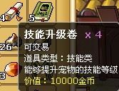 包括技能書,技能升級卷。寵物學(xué)習(xí)技能需要有相應(yīng)技能書,學(xué)習(xí)了技能之后就可以通過技能升級卷對技能進行升級,增強技能的傷害力。