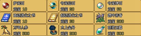 進化合成類道具用于進化和合成寵物,只有寵物不斷進化和合成,寵物的成長和能力才會提高。這類道具除了部分可以在雜貨鋪和元寶商店購買得到,大部分進化合成類道具都可以在野外怪物身上掉落。