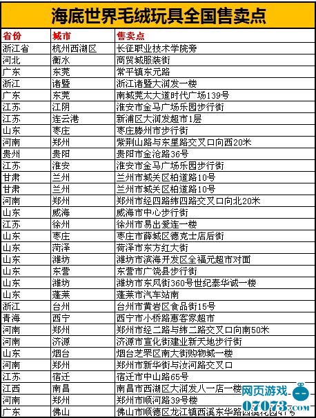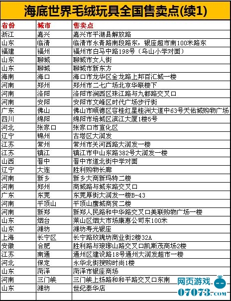 海底世界毛絨玩具不僅僅在淘寶上有旗艦店,更在各地區(qū)都有實體店,小魚們可以讓自己的爸爸媽媽帶上自己到這些玩具店去挑選自己喜歡的毛絨玩具哦!