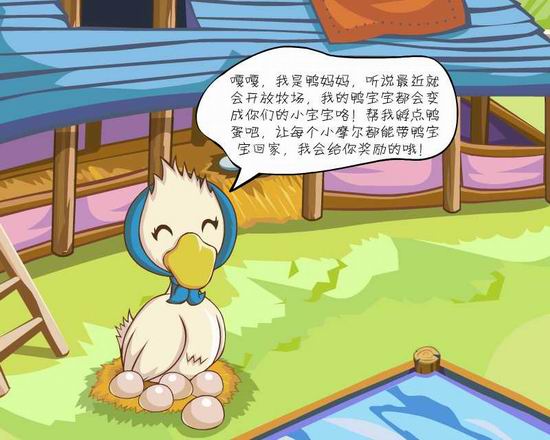 粒粒也聽說啦,摩爾牧場近期就要開放了呢!鴨媽媽急著想多孵點小鴨子,讓每個小摩爾都能帶小鴨子回家。 對了對了,等6月19日摩爾牧場開放,菩提大伯會公開招聘一名有責(zé)任心有愛心的飼養(yǎng)員哦!不知道粒粒能不能參加呢嘻嘻,因為我也好喜歡小動物呀,太期待了! 哈,差點忘了告訴大家,“農(nóng)場搶收計劃”將會從6月12日開始實行。7天內(nèi)不把家園里的果實收掉,你的好朋友就可以代替你把果實帶回去哦!請小摩爾養(yǎng)成良好的習(xí)慣,千萬不能浪費呀!