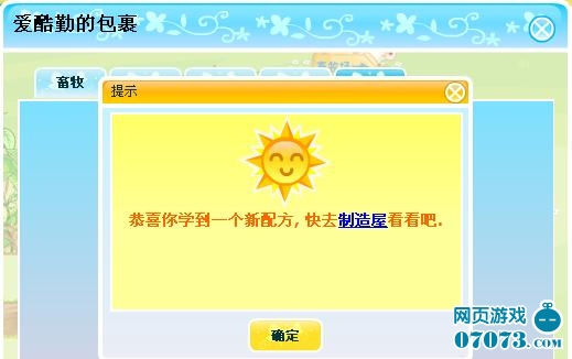 4、點(diǎn)擊包裹里面的清香花茶圖標(biāo)就可以把清香花茶制造屋配方安裝到制造屋上面