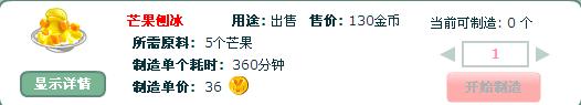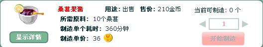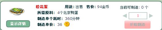 對比升級前后制造屋,發(fā)現(xiàn)增加了松花蛋、芒果刨冰、桑葚果醬三種食物和果汁的制造,以下把制造松花蛋、芒果刨冰、桑葚果醬三種食物所需的原料和時間等截圖,以便大家決定是否要升級: