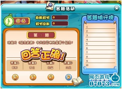 3. 每天答題積分的總排行會(huì)更新。每月排在前3的玩家都會(huì)獲得意外的驚喜喲!