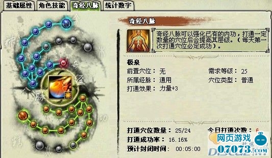 3,維護(hù)后進(jìn)入游戲,你會(huì)發(fā)現(xiàn),這個(gè)穴道已經(jīng)打通了,但還是顯示23個(gè),你可以繼續(xù)點(diǎn)一個(gè)穴道,而且這時(shí)成功率是100%