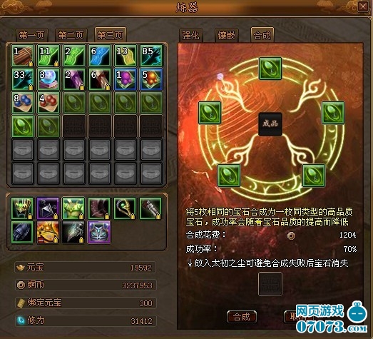 仙訣中裝備強化是提升裝備屬性的一個很好的手段,相對于裝備強化的屬性提升,我們還可以用寶石微調裝備的屬性。寶石的獲得途徑很多,我這里就不說明了。雖然寶石很多,但是裝備的寶石孔卻是有限制的。綠色裝備就只有1個寶石孔,藍色的2個,紫色的3個,橙色的高達4個孔。當我們獲得了大量的寶石之后,我們可以選擇合成寶石提升寶石的等級。例如我獲得了9個綠色寶石,我現在想要將其提升到藍色品質,這個時候寶石合成就有用處了。