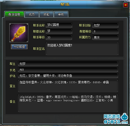 幫徽:使用元寶可以升級幫徽,幫徽用于額外提升幫派人員上限。