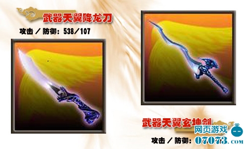 情侶武器套裝:“天翼降龍刀”與“天翼玄坤劍”: