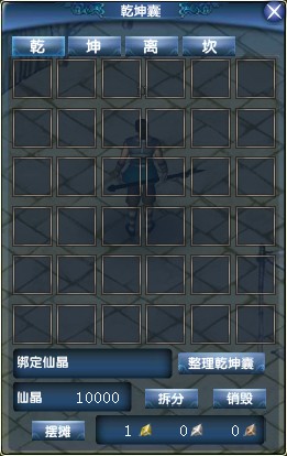 仙緣OL的貨幣分為3種:晶石,仙晶,綁定仙晶,在人物背包(乾坤囊)內(nèi)依次排列(如下圖)