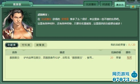 1)這里是劍客們獲得榮譽嘉獎的地方,你可以使用比武擂臺內(nèi)贏得的榮譽值來兌換你想要的功能。