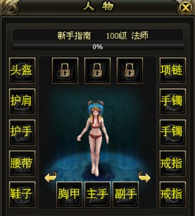 在主界面上,點擊“人物”按鈕(或快捷鍵C),在人物面板上可以查看裝備。