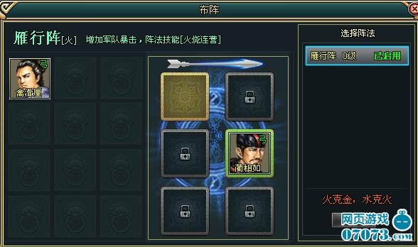 根據(jù)任務(wù)的提示,當(dāng)獲得第二個武將后,可以在陣法中進(jìn)行布陣。新手默認(rèn)只有一個陣法,陣法自帶金木水火土五行屬性,并且擁有一個專屬屬性陣技,戰(zhàn)斗中自動施放!這個后期會詳細(xì)為大家講解。